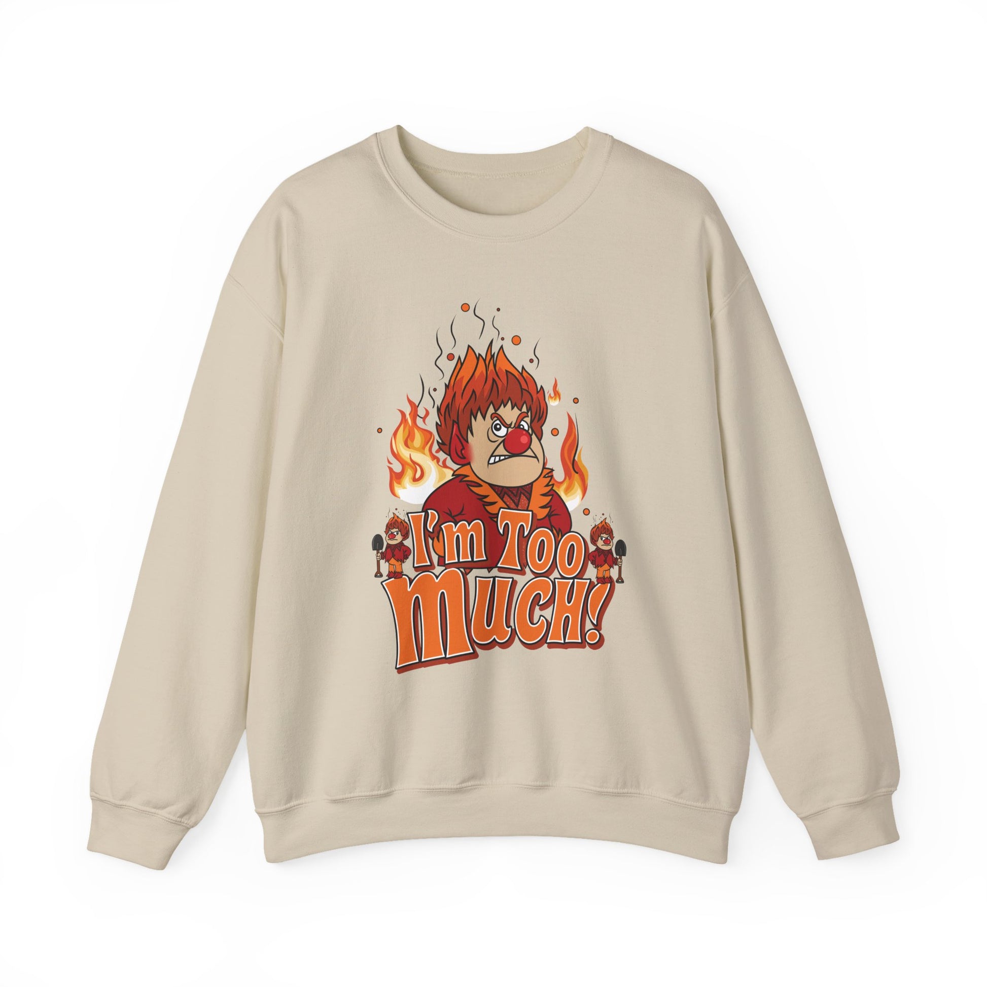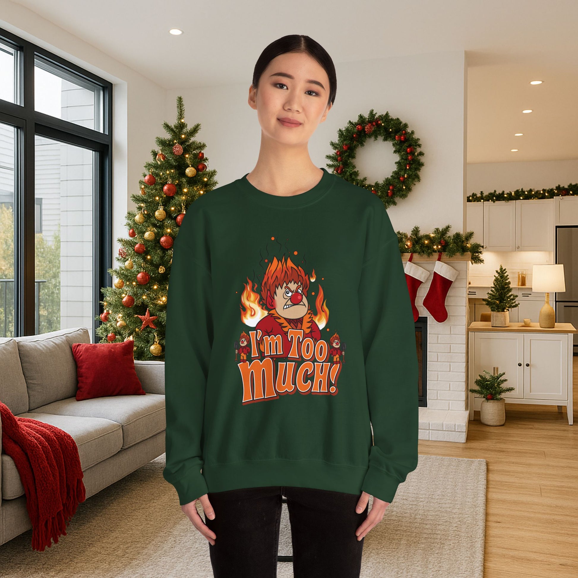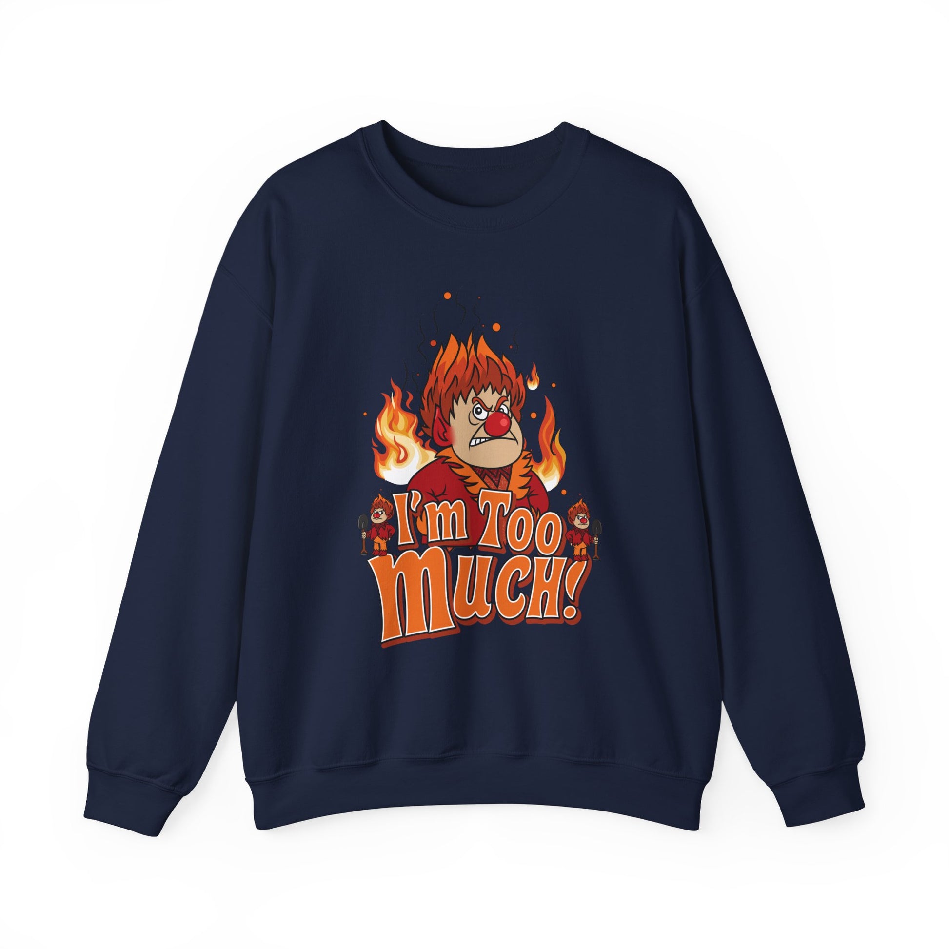 Heat Miser I'm Too Much Sweatshirt | Retro Christmas Movie Inspired Crewneck | A Year Without a Santa Claus Fan Art