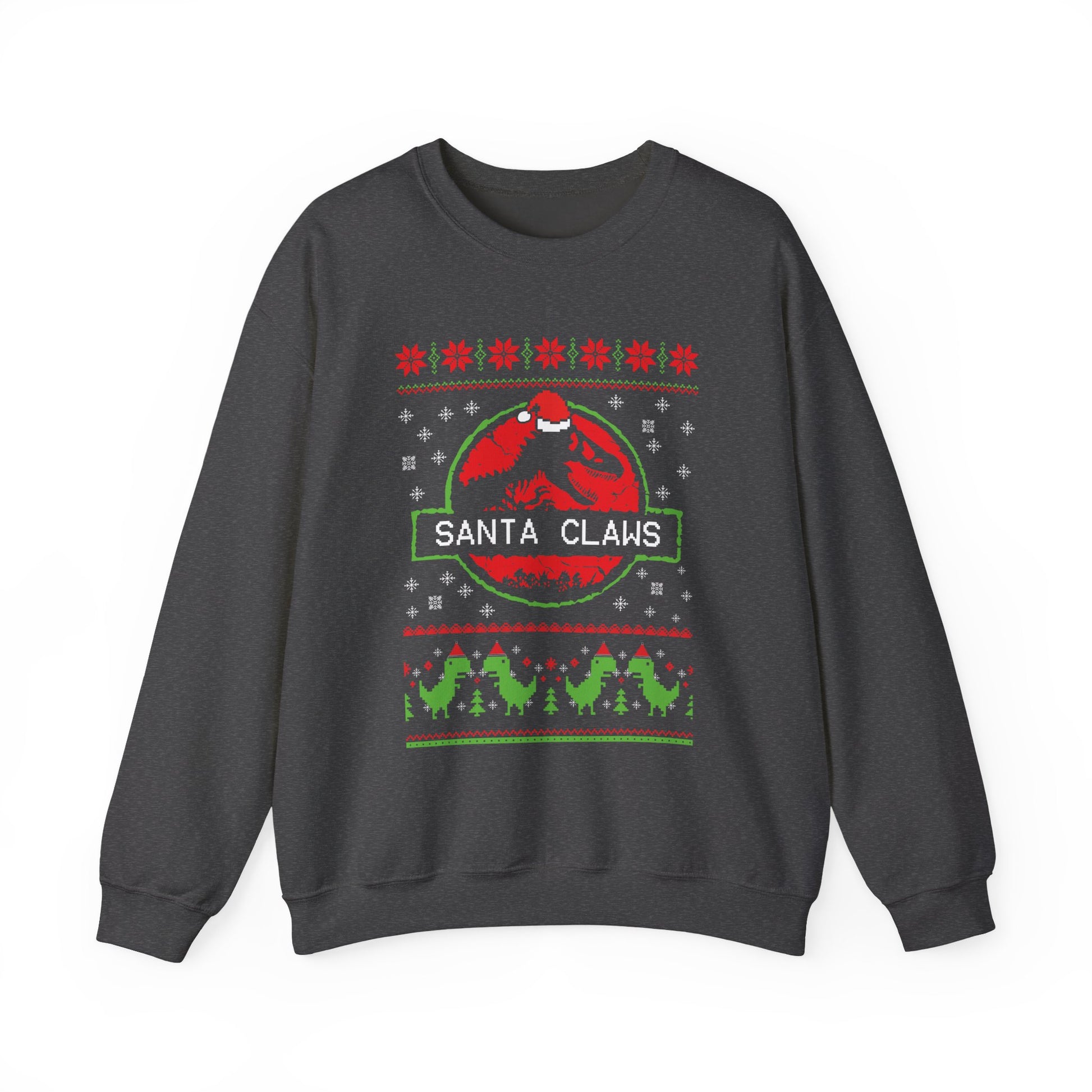 Santa Claws Jurassic Christmas Sweatshirt | Dinosaur Parody Ugly Christmas Sweater | Funny Santa Claws Dino Top